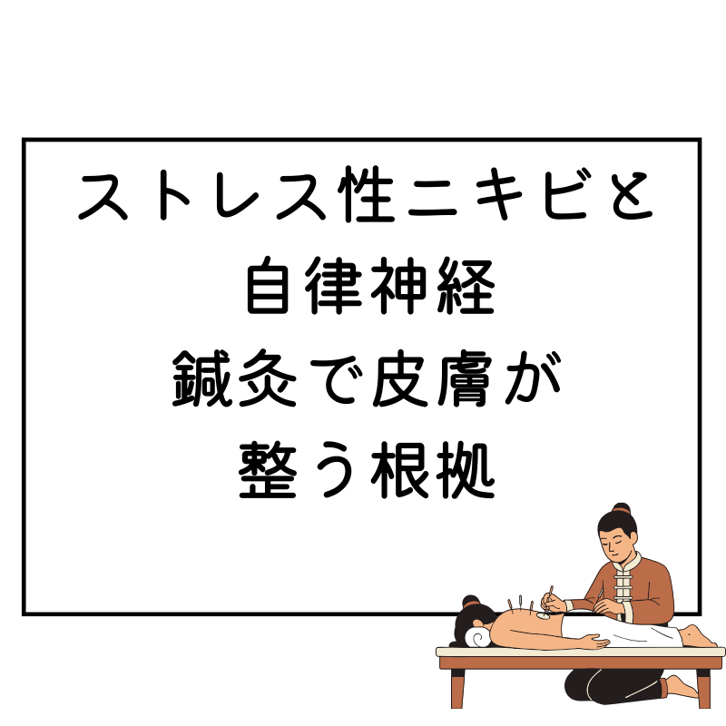ストレス性ニキビは、ストレス → 睡眠低下 → 炎症・皮脂・バリア低下 → 悪化 → さらにストレスというループに入りやすいのが特徴です。 そこで当院では、①鍼灸で自律神経反応を整える、②整体で首肩・胸郭の緊張を緩め呼吸を深くする、 ③生活習慣(睡眠・食事・スキンケア)の優先順位を一緒に整理する、という“多面的”な方針を取ります。