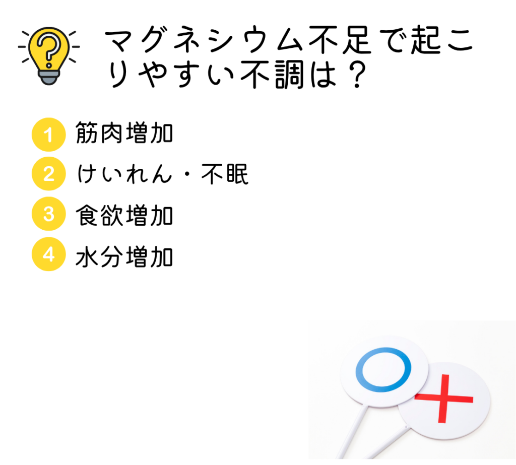 このように、マグネシウム不足は体と心の両方に影響を与えるため、さまざまな不調として現れます。